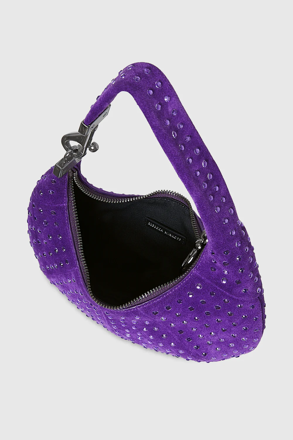 Cue the nostalgia vibes. In a ‘90s-inspired silhouette our new mini croissant bag is made of velour suede and embellished with dainty crystal studs that add some serious sparkle. It's finished with polished gunmetal hardware.